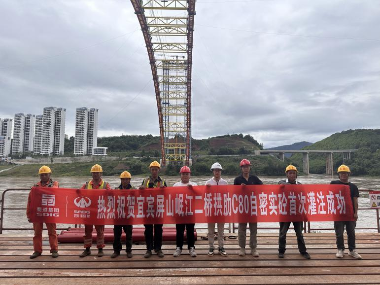 宜宾屏山岷江二桥拱肋C80自密实砼“首次”灌注成功