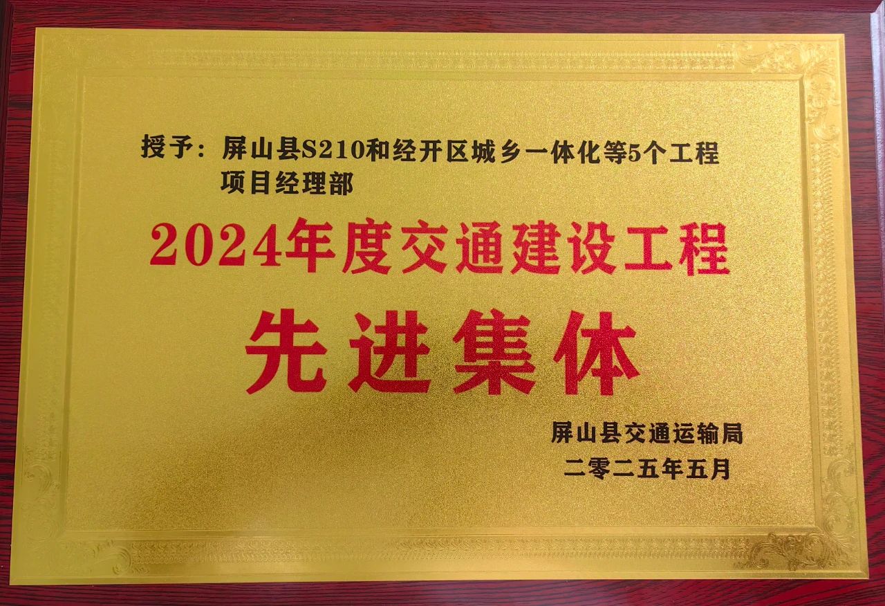 屏山岷江二桥项目部荣获屏山县交通运输局2024年度交通建设工程“先进集体”称号